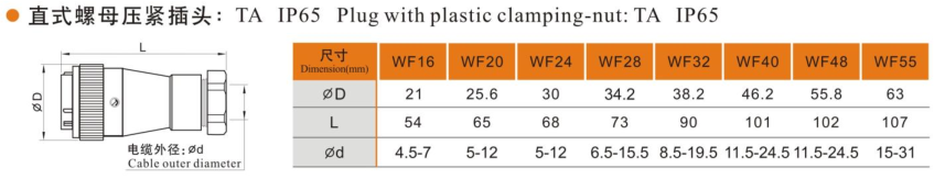 IP67 weipu metal threaded WF series TA plug waterproof WF48 WF55 aviation connector with plastic clamping nut