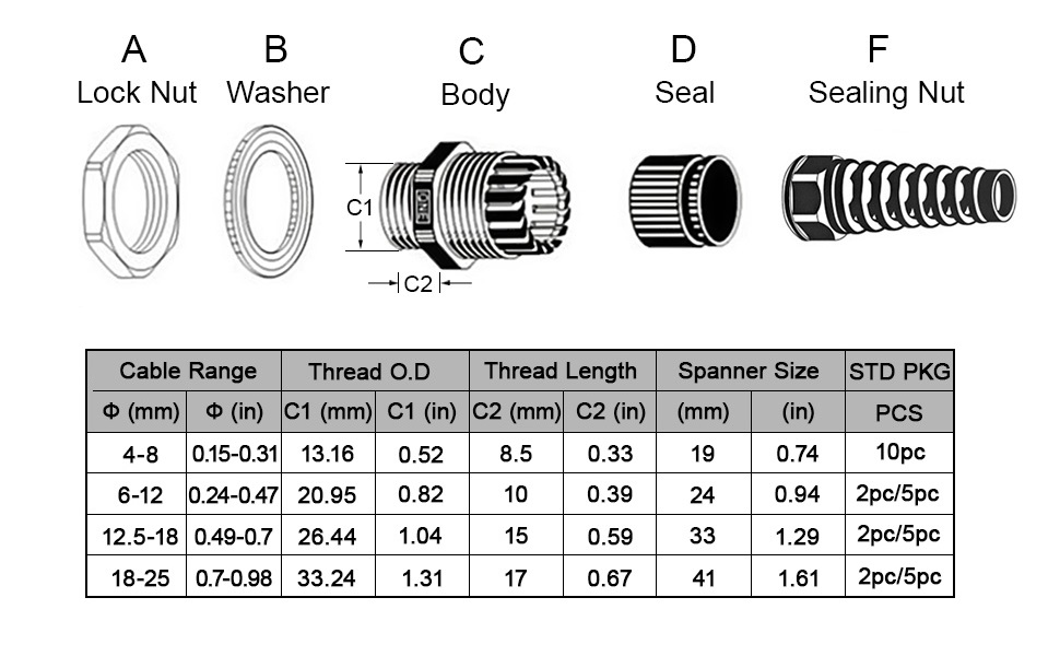 2. Product Parameter plastic cable gland