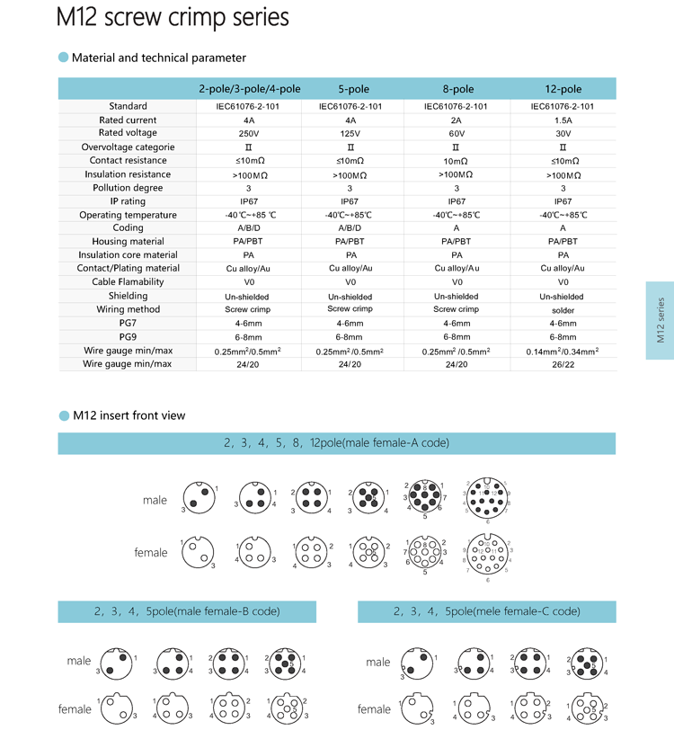 This m12 electrical connector are widely used in the aerospace, automotive, electric power, mechanical, automation, as well as the electrical service industry. We design and produce according to international and the U.S. standard, our products can substitute European, US and Taiwan connectors, own the same quality.