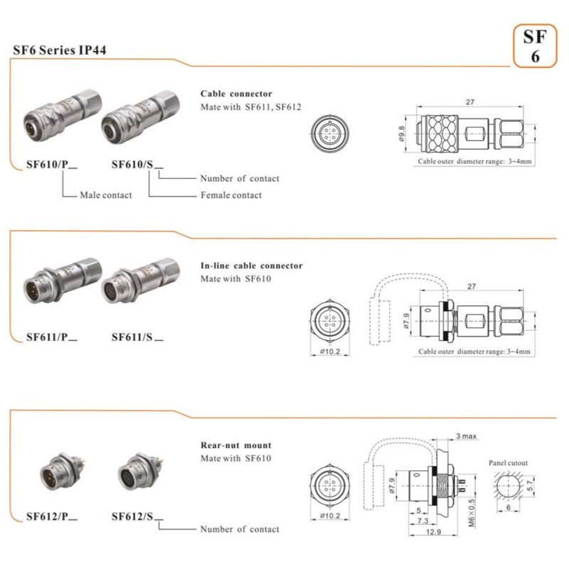 | Product name | SF610 connector push pull male and female connector |